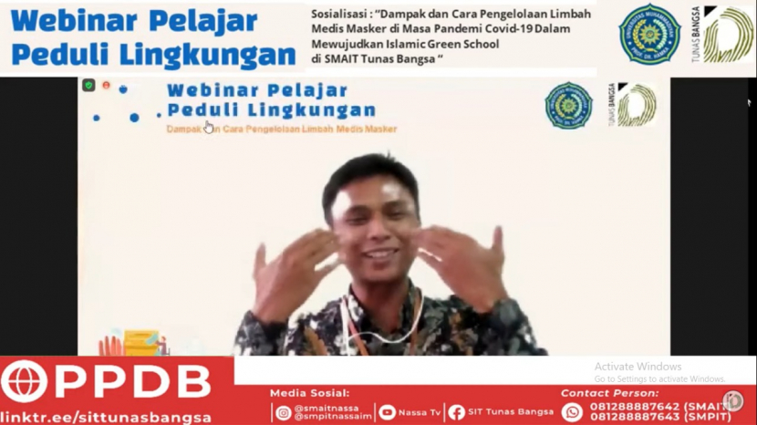 Pengetahuan dan pemahaman yang benar terkait bagaimana sampah masker dikelola perlu disosialisasikan kepada seluruh masyarakat. Sehubungan dengan hal tersebut, Program Studi Kesehatan Masyarakat Universitas Muhammadiyah Prof. DR. HAMKA (UHAMKA) melalui program Pengabdian Masyarakat Fakultas Ilmu-Ilmu Kesehatan menyelenggarakan yang disampaikan oleh Awaludin Hidayat Ramli Inaku di Webinar Pelajar Peduli Lingkungan dengan tema Sosialisasi “Dampak dan Cara Pengelolaan Limbah Medis Masker di Masa Pandemic Covid-19 dalam Mewujudkan Islamic Green School di SMAIT Tunas Bangsa”. Webinar yang dilaksanakan bertepatan pada hari ibu 22 Desember 2021 tersebut juga bagian dari kegiatan pekan karakter siswa SMAIT Tunas Bangsa Depok.