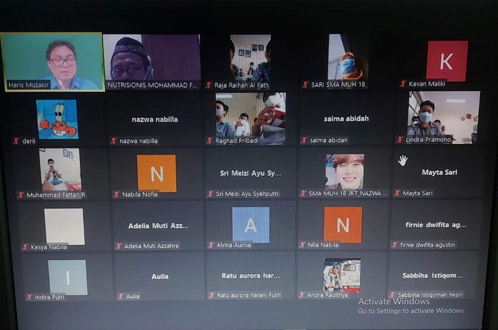 Selanjutnya, perhatian kepada remaja saat Pembelajaran Tatap Muka pada masa Pandemi Covid-19 yang juga harus diinformasikan adalah pentingnya asupan makanan bergizi seimbang untuk tetap menjaga kesehatan dan imunitas tubuh. Menurut data Riskesdas 2018 menunjukkan bahwa 26,9% remaja usia 16-18 tahun dengan status gizi pendek dan sangat pendek, Sedangkan prevalensi berat badan lebih dan obesitas sebesar 13,5% pada remaja usia 16-18 tahun. Diperlukan perhatian khusus bagi remaja di tingkat menengah atas yaitu remaja yang Sekolah di SMA Muhammadiyah dengan usia umur sekitar 16-18 tahun untuk mendapatkan informasi mengenai gizi seimbang, dalam kesempatan tersebut Mohammad Furqan menjelaskan kepada remaja SMA Muhammadiyah 18 mengenai permasalahan remaja terkait konsumsi makanan yang bisa mengakibatkan gizi lebih dan obesitas sehingga bisa mengganggu aktivitas belajar di rumah maupun di sekolah, pentingnya gizi seimbang melalui 4 pilar gizi seimbang, penerapan isi piringku, pemenuhan gizi seimbang usia remaja, serta pentingnya membawa bekal makanan menurut isi piringku untuk pemenuhan asupan makanan di masa pembelajaran tatap saat masih Masa Pandemi Covid-19.