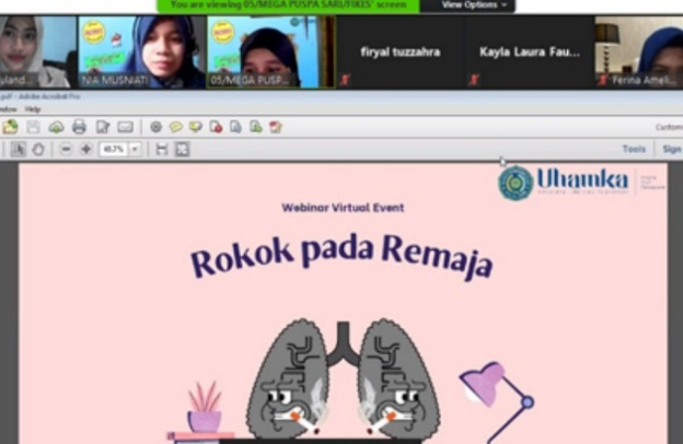 Dosen program studi Kesehatan Masyarakat FIKES UHAMKA yang terdiri dari Ns. Mega Puspa Sari S.Kep., M.K.M. serta Nia Musniati, S.K.M., M.K.M. selenggarakan pengabdian masyarakat dengan tema Bahaya Merokok Usia Remaja Pada SMK Muhammadiyah 9 Jakarta. Kegiatan yang diselenggarakan melalui online virtual zoom meeting dilakukan di sekolah yaitu SMK Muhammadiyah 9 Jakarta pada tanggal 26 Februari 2021.