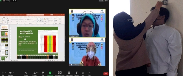 Sementara kegiatan luring berupa praktik langsung cara menggunakan aplikasi WHO AnthroPlus pada hari Jumat, tanggal 10 Desember 2021WIB bertempat di SMP Muhammadiyah 3 Jakarta. Para siswa diukur berat badan dan tinggi badannya. Selanjutnya menginput data ke aplikasi WHO AnthroPlus berupa tanggal pengukuran, tanggal lahir, jenis kelamin, berat badan, dan tinggi badan. Setelah itu, dapat secara langsung diketahui status gizi masing-masing dengan melihat angka (standar deviasi) dan warna yang tertera di dalam aplikasi.