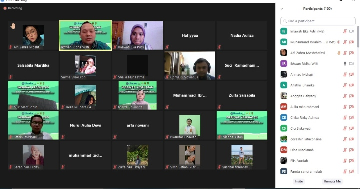Di sela-sela Seminar online, Ikhwan Ridha Wilti, MKM, Ketua Tim Pengabdian Kepada Masyarakat ini menyampaikan Penjelasan terkait kegiatan ini yang dibuat dalam bentuk Edukasi kepada generasi muda yang tergabung dalam komunitas Angkatan Muda Muhammadiyah (AMM ) Agar virus Covid-19 bisa dicegah penularannya di wilayah Kabupaten Bekasi melalui gerakan mencuci tangan, olahraga, dan makan makanan bergizi seimbang.
