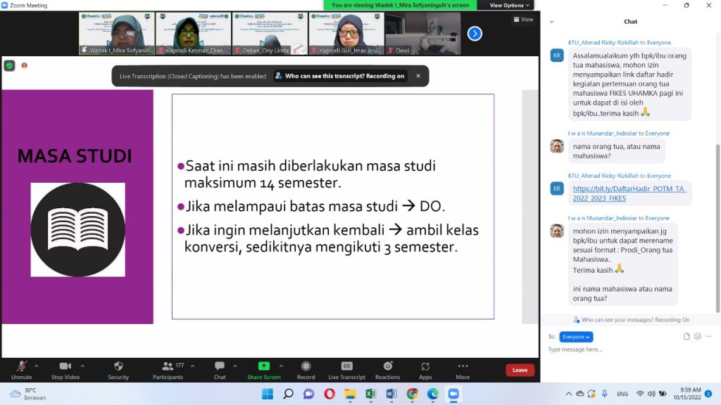 Pertemuan orang tua mahasiswa dengan civitas akademik FIKES UHAMKA yang diselenggarakan pada 15 Ooktober 2022.